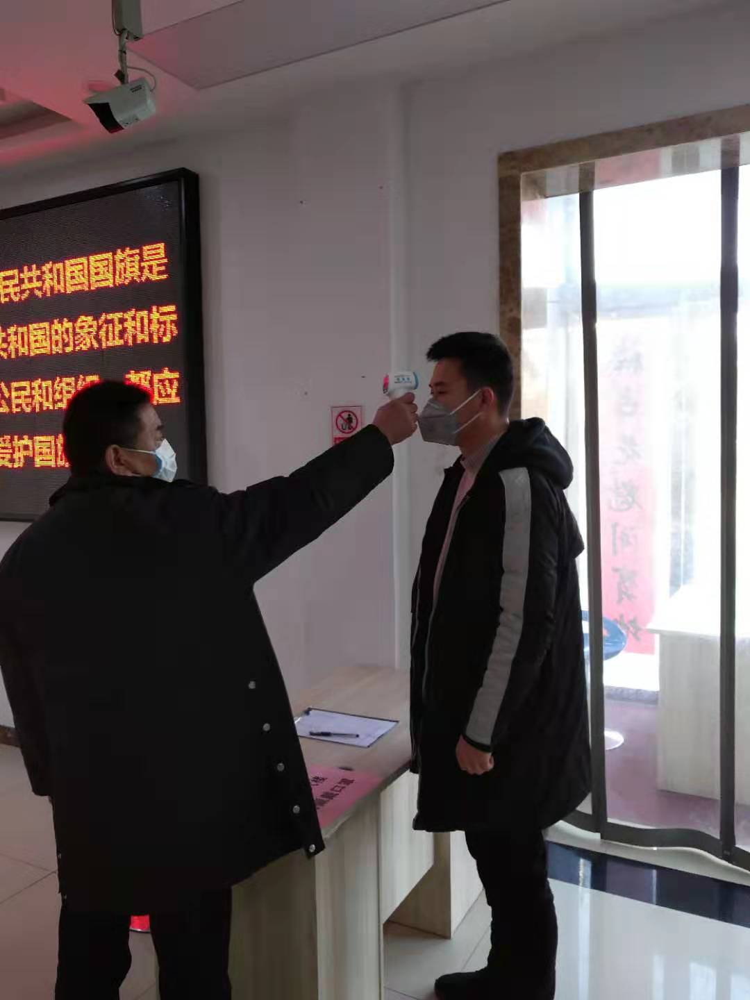 在公司入口處,設置體檢點,對進入辦公區(qū)域人員進行體溫檢測,確保到崗人員身體狀況良好。